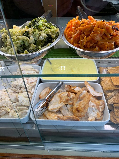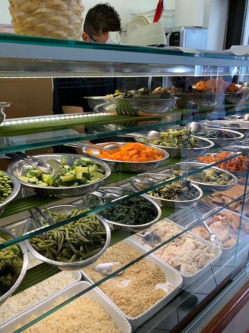 Há um pequeno buffet ode você escolhe como quer montar o seu prato, escolhendo entre massas, arroz branco ou integral, carnes variadas, vegetais e salada. Tudo fresquinho e feito na casa. O valor depende do que você escolher, mas geralmente varia entre 10 e 13 euros. Há outros pratos também mais baratos e bons cafés.