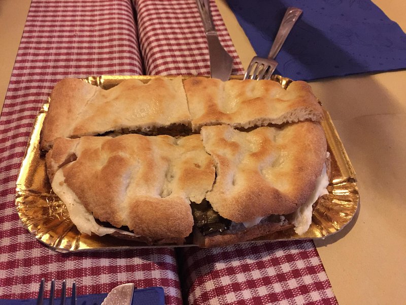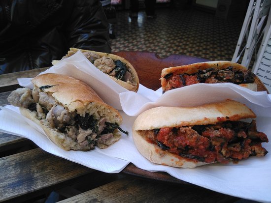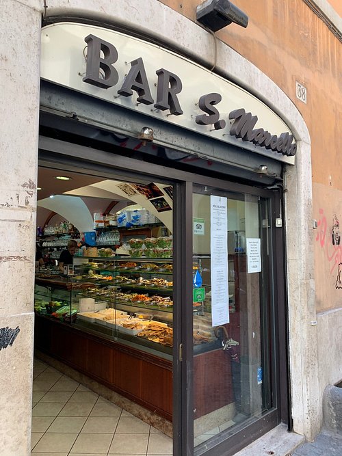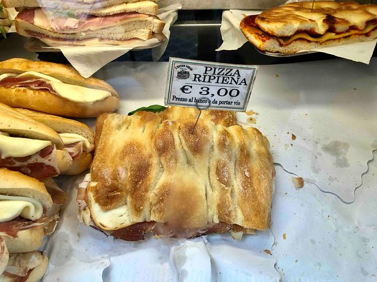 No balcão, há sanduiches, paninis e pedaços de pizza (pizza al taglio) por cerca de 3 a 5 euros. Porém, o menu é amplo igual o das padocas paulistas e conta inclusive com pratos de massa bons por menos de 10 euros.