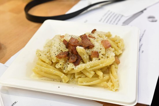 Os pratos são fartos e tudo é feito artesanalmente no local, desde a massa fresca aos molhos. O menu conta com opções a partir de 5,50 até 10 euros. A média do preço dos pratos de massa é de 7 euros. Recomendo experimentar a carbonara. Eu amei!
